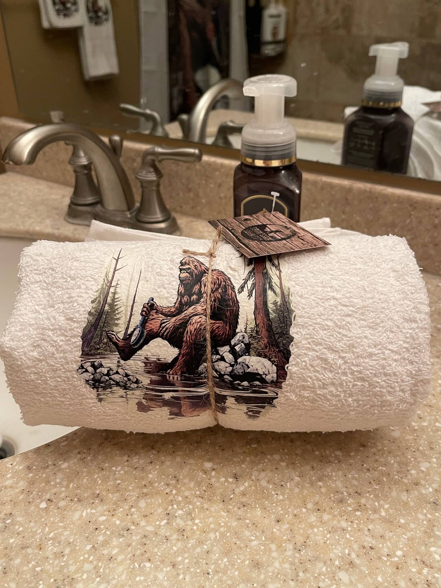 These towels will look great hanging in your bathroom and share your love for Bigfoot! Makes great cabin decor.