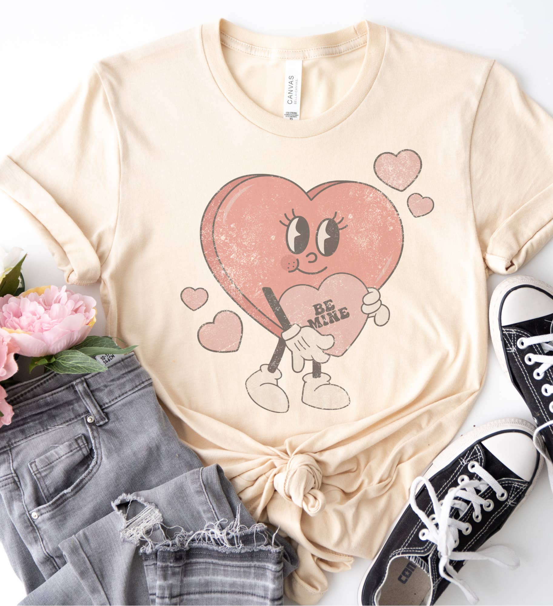 Sweeten your style with this cute 'Be Mine' Vintage Sublimation candy heart Valentine tee. This retro heart Vday style is a delightful and nostalgic nod to classic Valentine's sentiments.