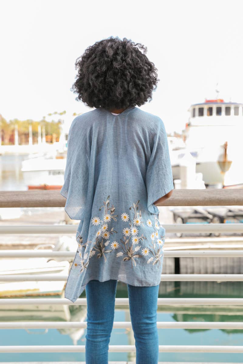 Discover the charm of our Embroidered Spring Daisy Woven Kimono, a spring-summer bestseller. Its enchanting daisy design and lightweight feel make it a favorite for the warmer months. Perfect for layering over your favorite outfits.