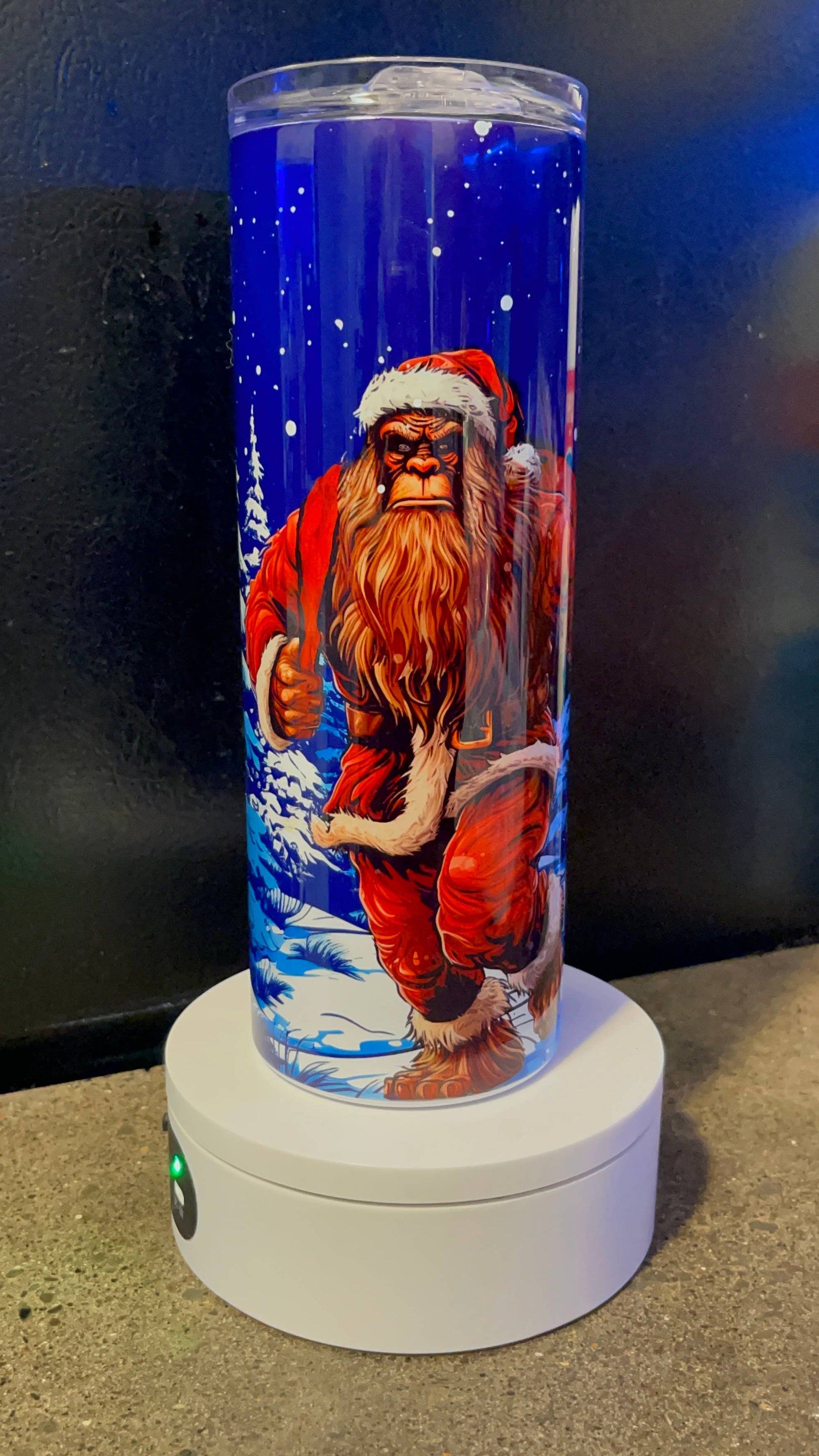 Santa Squatch Christmas scene tumbler 20 oz